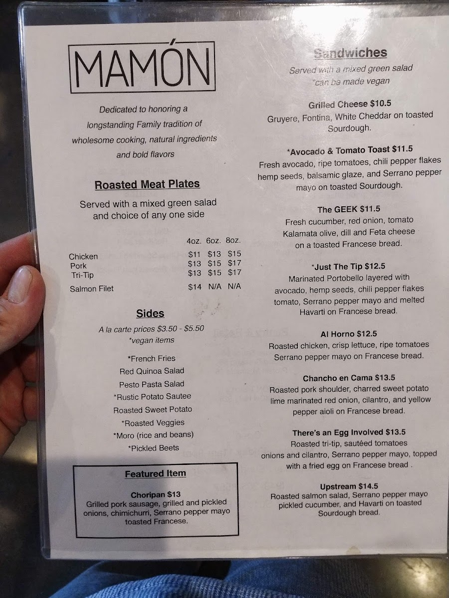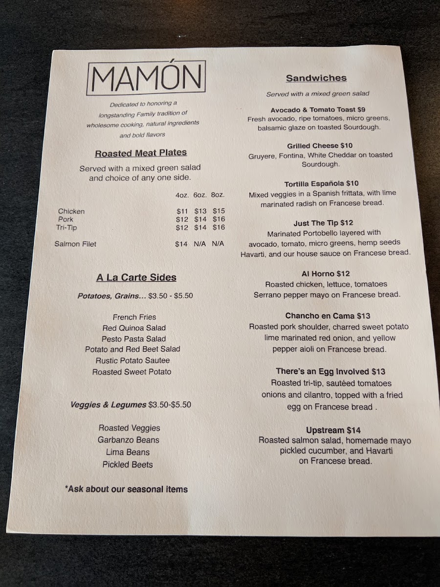 Roasted tri-tip, roasted tomatoes, onions and cilantro, serrano pepper mayo, topped with a fried egg on Francese bread.