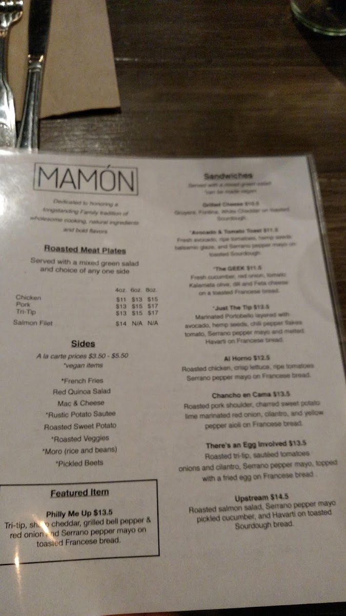 Roasted pork shoulder, charred sweet potato, lime-marinated red onion, cilantro, and yellow pepper aioli on Francese bread.